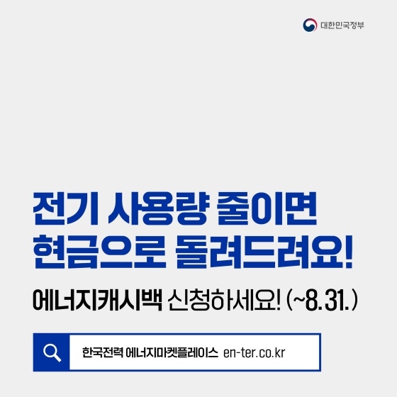 새정부 에너지정책 방향 추진에 따른 가정・건물 에너지 수요 효율화의 일환으로 에너지캐시백 사업이 7월 4일부터 전국으로 확대시행 되었습니다. 전기사용량을 줄이고 현금을 받을 수 있다니 자세히 알아볼게요.